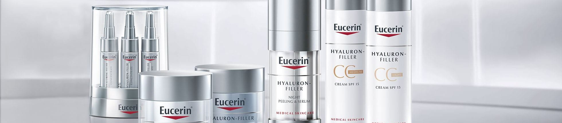 بعد ذلك، عمل الفريق على إضافة فلاتر فائقة ضد أشعة UVB وUVA على التركيبة الأساسية لابتكار ثلاث كريمات نهارية مما وفر مجموعة من مستحضرات الحماية من أشعة الشمس تناسب جميع أنواع البشرة: الكريم النهاري المضاد للتجاعبد للبشرة الجافة Hyaluron- Filler Day SPF 15 for dry skin و الكريم النهاري المضاد للتجاعبد للبشرة العادية إلى المختلطة ،Hyaluron-Filler Day SPF 15 for normal to combination skin وكريم تصحيح البشرة متوفر في ظلالين: الكريم الخفيف Eucerin Hyaluron-Filler CC Cream SPF 15 والمتوسط Eucerin Hyaluron-Filler CC Cream SPF15 Medium.