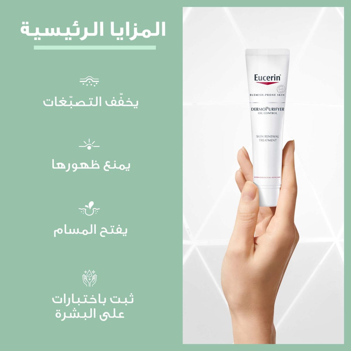 صمم العلاج المبتكر لتجديد البشرة Eucerin DermoPurifyer Skin Renewal Treatment خصيصًا للحد من ظهور البثور والحطاطات والقروح بالإضافة إلى إزالة علامات حب الشباب.