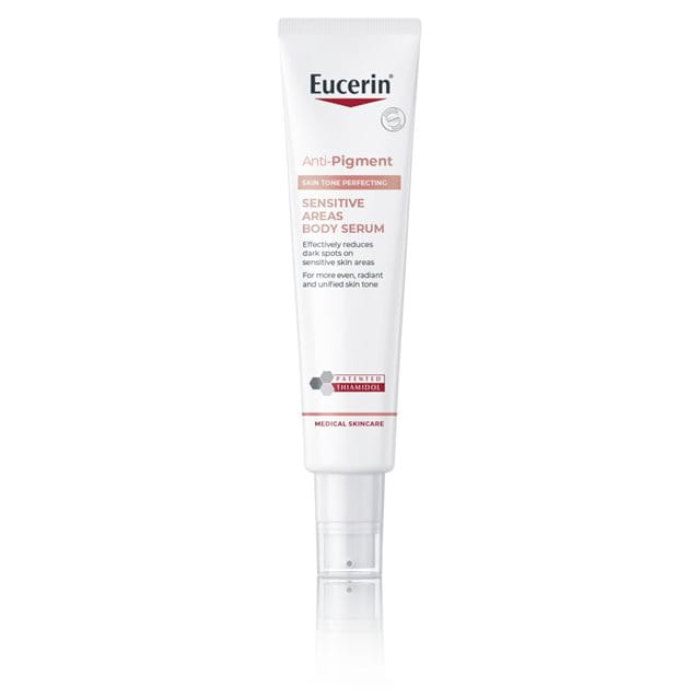 Eucerin Anti-Pigment Sensitive Areas Body Serum contains concentrated Hyaluronic Acid which improves skin moisturisation. It is effective when used individually, as part of your current skincare routine, or alongside other products in the Eucerin Anti-Pigment range.