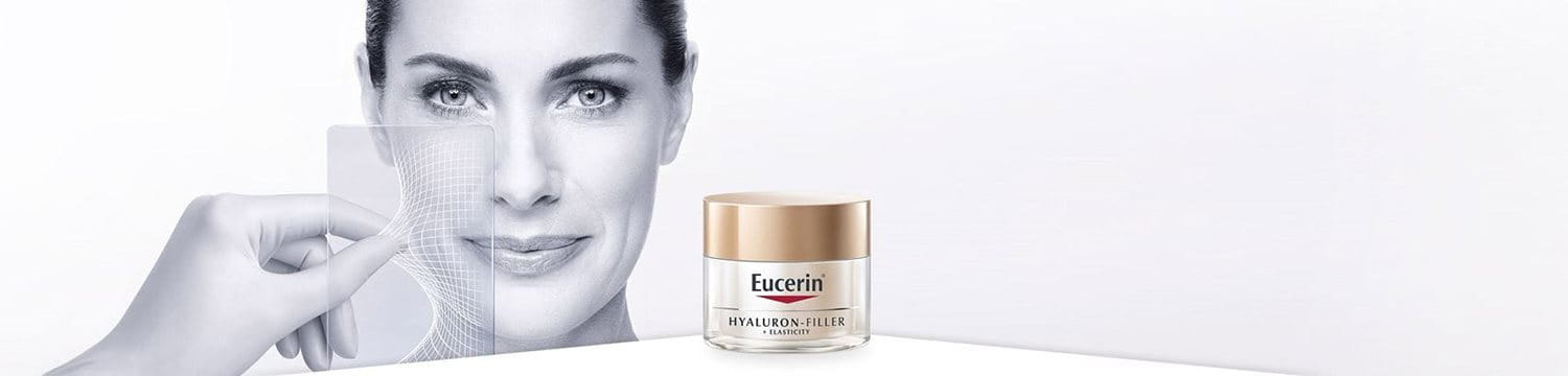 صممت مجموعة Eucerin Hyaluron-Filler + Elasticity خصيصًا لملء التجاعيد العميقة وتحسين مرونة وتغذية البشرة الناضجة والضعيفة. إن مزيج Eucerin المبتكر من كل من Hyaluronic Acid ذو الوزن الجزيئي العالي العالي والمنخفض يعمل على ملء التجاعيد العميقة بشكل واضح. يعمل Arctiin (وهو عقار نشط أثبتت قدرته على تسريع عملية تجدد الكولاجين في خلايا الجلد) إلى جانب Silymarin (أحد مضادات الأكسدة القوية التي تحمي الكولاجين والإيلاستين من التدهور وتحسن الدورة الدموية في الجلد على المستوى الخلوي). تصبح البشرة متينة وناعمة وتبدو نقية ومشرقة.